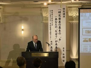 特別講演では福島県立医科大学 ふくしま子ども・女性医療支援センター 教授 髙橋俊文先生より「研究発表の基本の”キ”:あなたのなぜ?が未来を変える」のタイトルでご講演いただきました。臨床研究の計画の基本について改めて学ぶ貴重な機会となりました。今後の研究に生かしていきたいと思います。